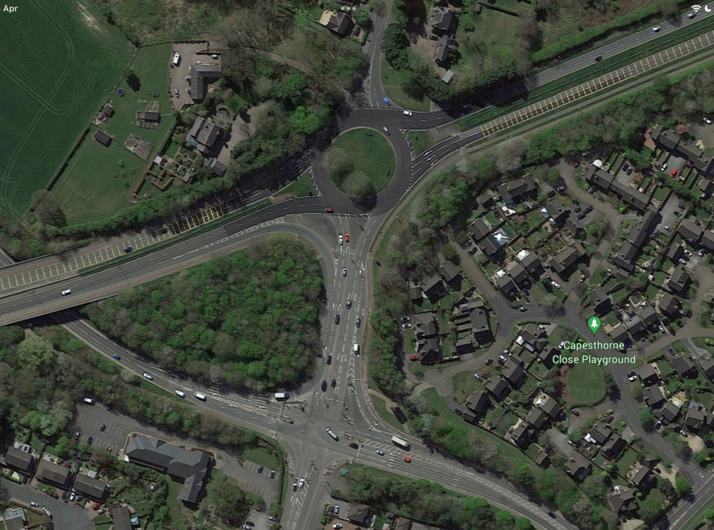 A complex crossroad which is joined to a busy roundabout in Kingsmeade needs careful observation and good lane discipline.