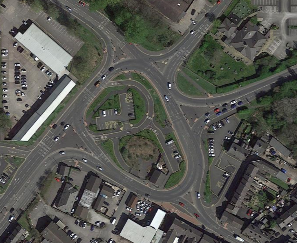 Unconventional roundabout in Cuddington – Unlike most roundabouts where we use the left lane to go ahead or take the second exit with this roundabout we use the