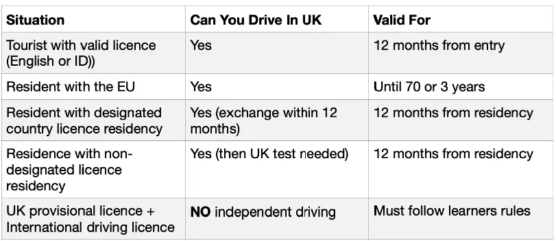 • Non-designated country: drive for 12 months, then take a UK driving test.